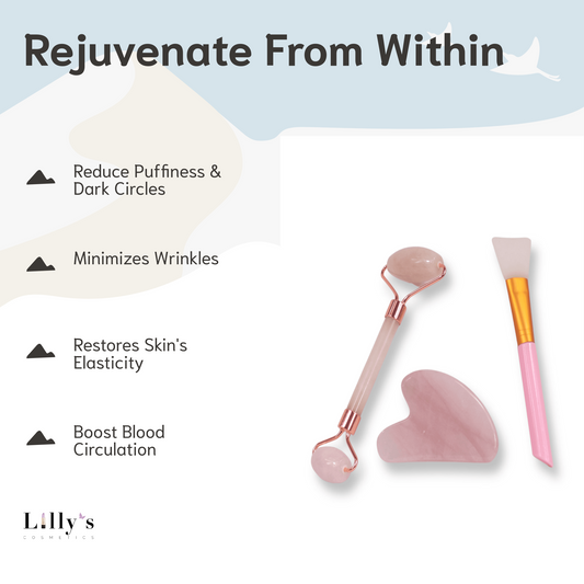 Rose Quartz Roller, Gua Sha and Brush Massage Set